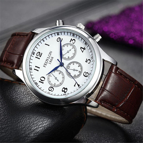 Casual Fashion Men Watches Luxury Brand High Quality FEDYLON Leather Strap Men Quartz Wristwatch Relogios Masculino Montre Homme