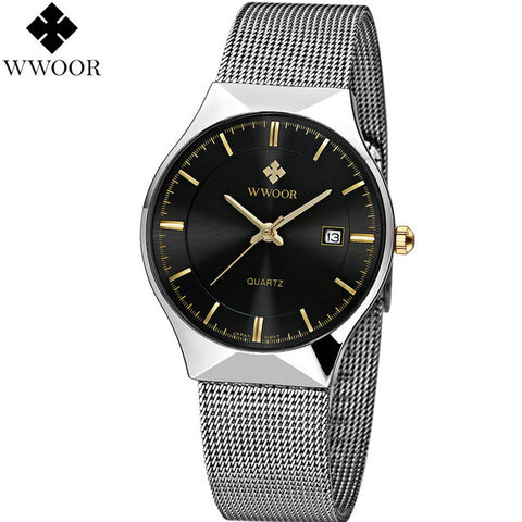 WWOOR New Top Luxury Watch Men Brand Men's Watches Ultra Thin Stainless Steel Mesh Band Quartz Wristwatch Fashion casual watches